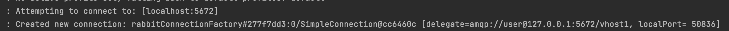콘솔에 이렇게 출력된다면 저희가 실행시켜놓은 rabbitmq 서버와 정상적으로 연결된 것입니다.