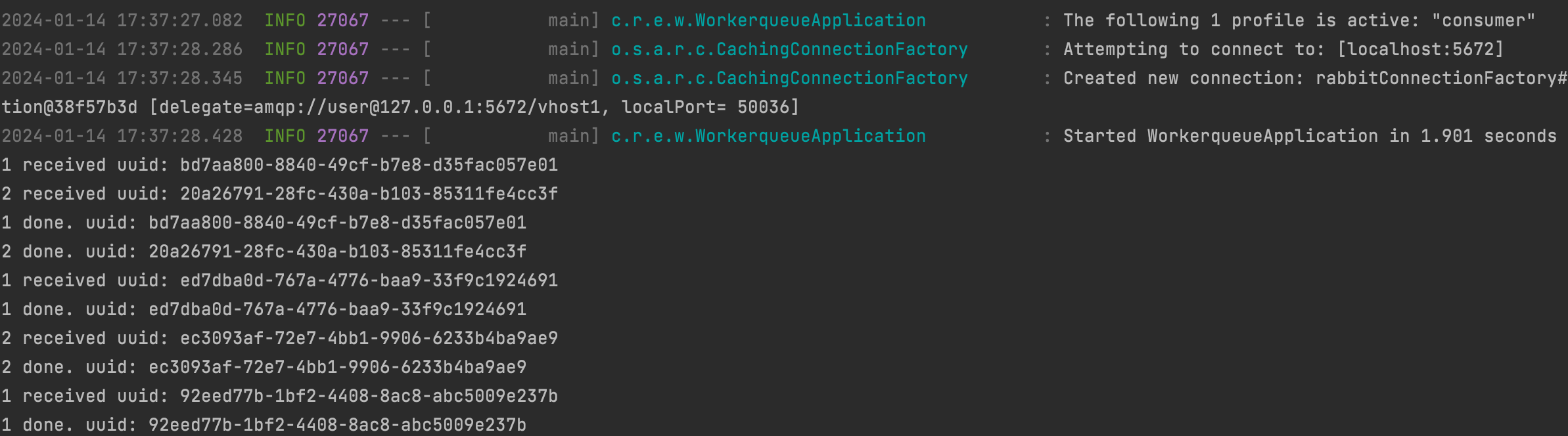 System.out.println(num +" received uuid: " + workerQueueTask.getId());